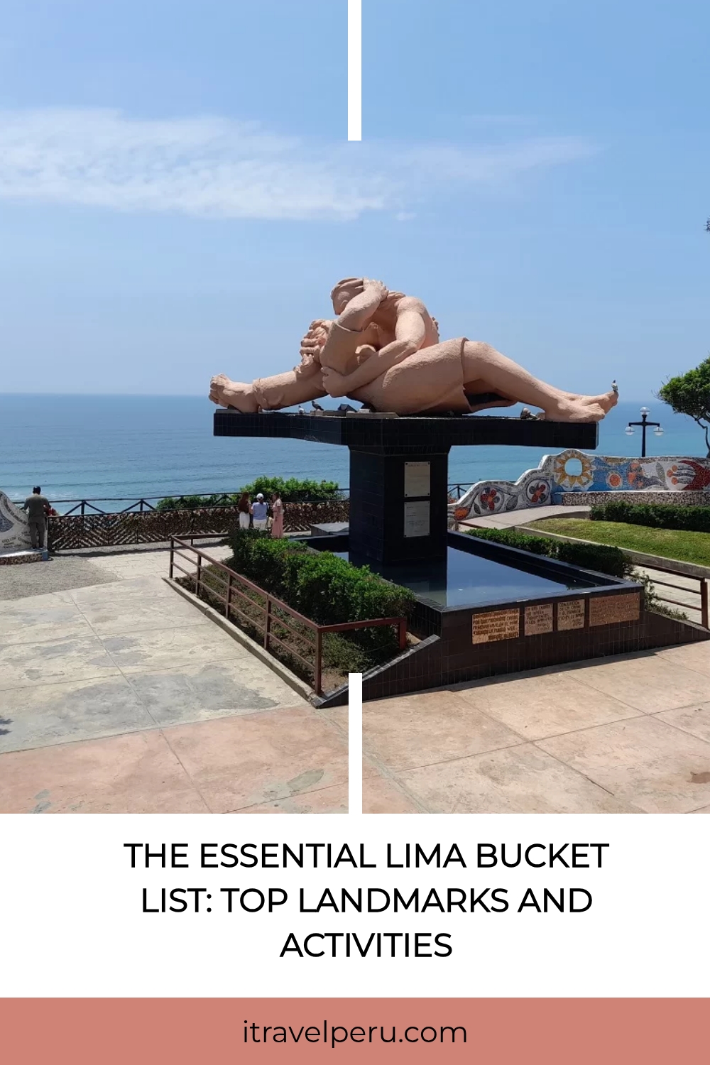 - El Malecón: Walk or cycle around this coastal walkway in the neighborhoods of Miraflores and Barranco. Don’t miss El Parque del Amor and the giant lovers sculpture.